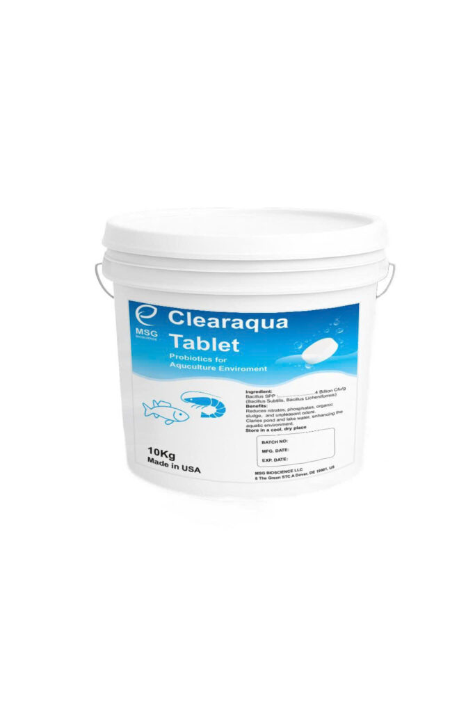 Clearaqua Tablets are an eco-friendly probiotic solution formulated with powerful Bacillus strains to optimize pond ecosystems and improve aquaculture outcomes. By degrading organic waste, sludge, ammonia, and nitrite, they significantly enhance water quality while creating a cleaner and healthier environment for shrimp and fish. The product supports stronger growth performance, boosts disease resistance, and ensures sustainable and profitable farming, making it an ideal choice for responsible aquaculture management.